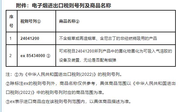 附件:電子煙進出口稅則號列及商品名稱