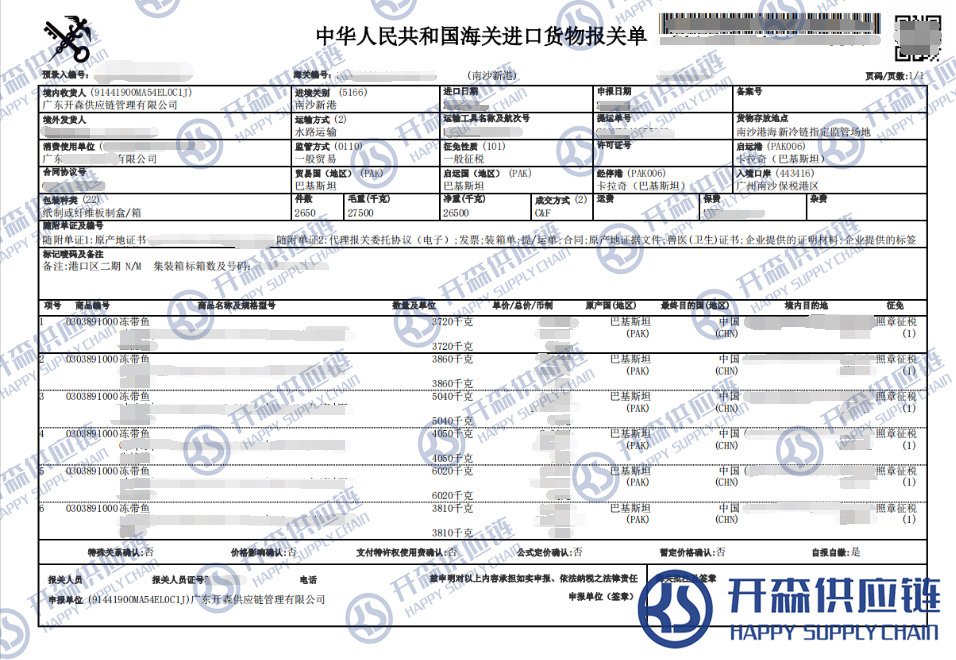 一、巴基斯坦凍帶魚(yú)進(jìn)口報(bào)關(guān)代理案例詳情