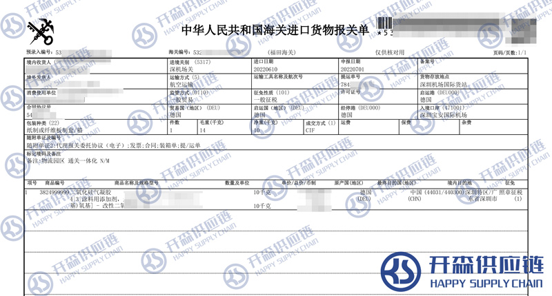 【本文結語】 上述就是德國二氧化硅氣凝膠進口報關清關代理服務【經典案例】的全部內容,希望能對您有所幫助,如有化工品進口報關上任何疑問及問題可隨時在線聯系我們或撥打 18002611553,開森供應鏈擁有豐富的化工品進口報關操作經驗及案例,10余年進口經驗為您所用,各類進口疑難都能為您一一解答及協助快速處理解決!