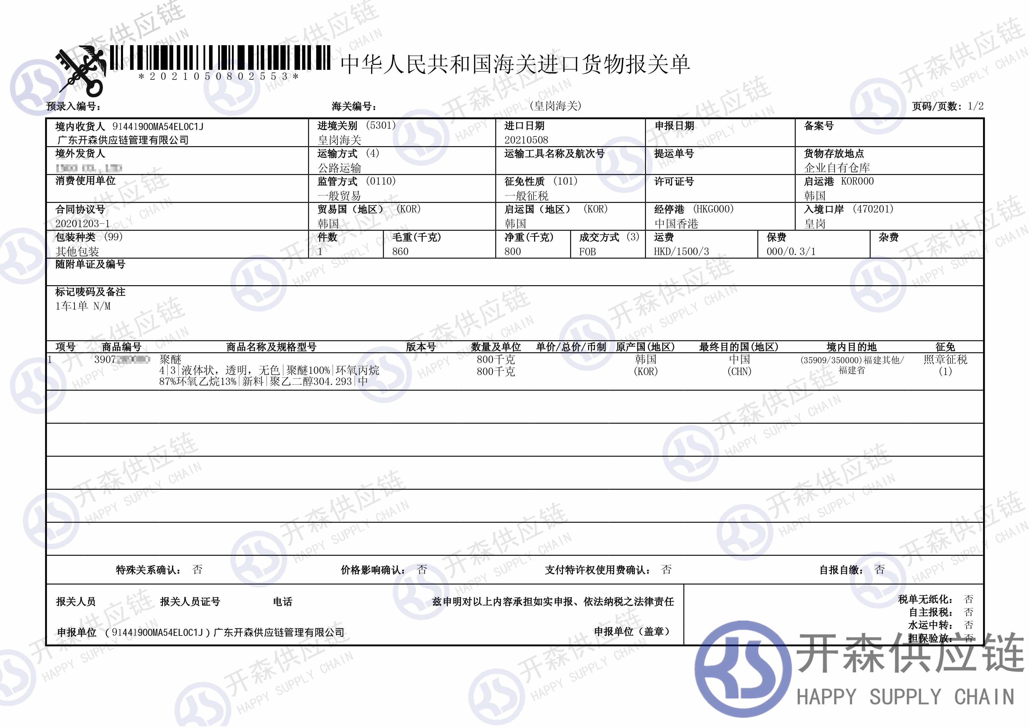 從韓國進口一批聚醚等到深圳皇崗碼頭,我司提供門到門進口一站式清關服務,開森擁有十余年化工品進口清關經驗及案例,為客戶提供量身制作的進口方案,讓客戶進口省時省心省成本。