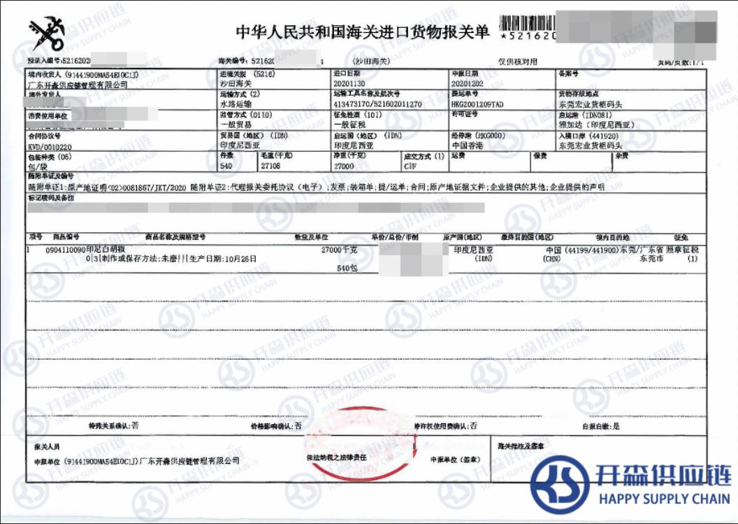 一、印度尼西亞白胡椒進口報關(guān)手續(xù)資料