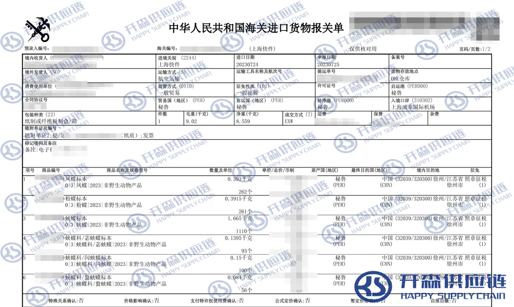 一、秘魯動物標(biāo)本進口報關(guān)代理案例詳情