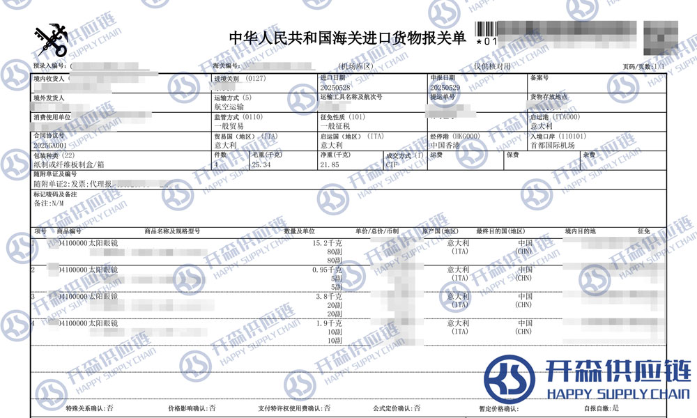 北京機(jī)場太陽眼鏡進(jìn)口報(bào)關(guān)代理服務(wù)【清關(guān)案例】