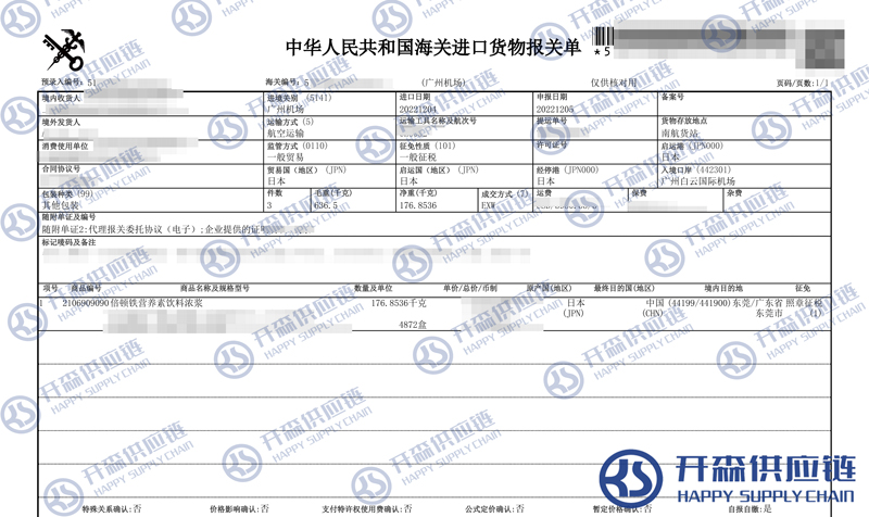 一、日本營(yíng)養(yǎng)素飲料濃漿進(jìn)口報(bào)關(guān)代理案例詳情