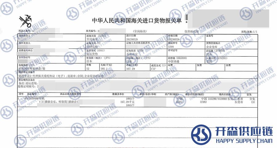 一、日本藍牙耳機退運返修報關(guān)代理案例詳情